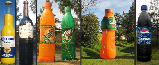 Botellas hinchables que imponen la presencia de la marca a los invitados en todo tipo de evento.